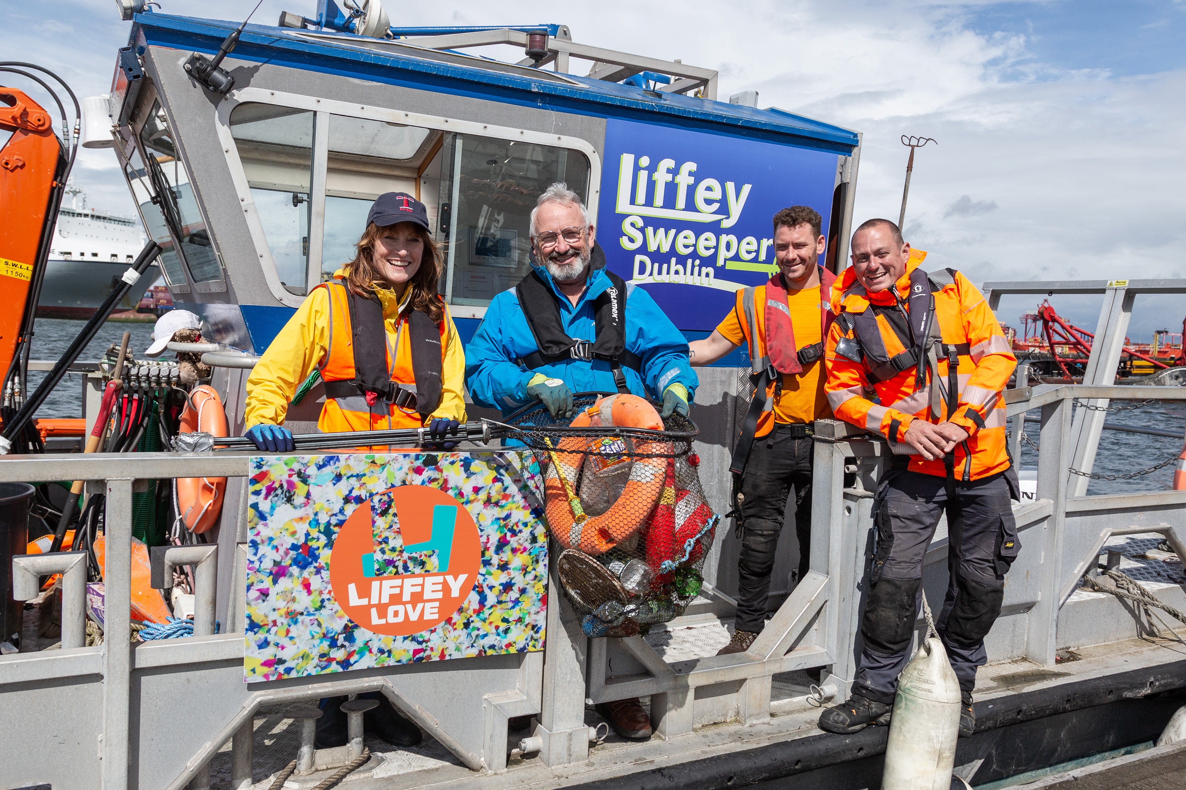 Collecting plastic on the Liffey Sweeper
